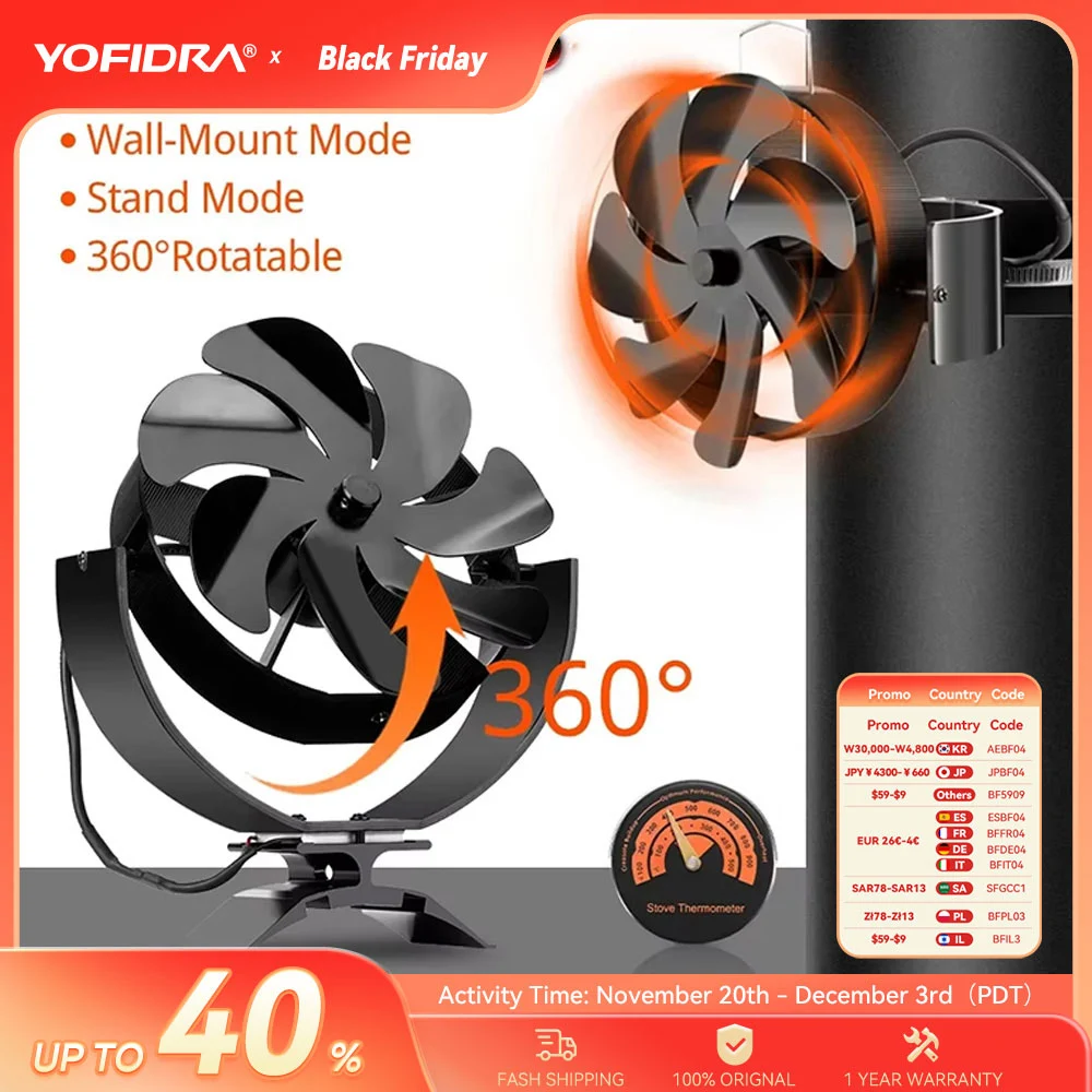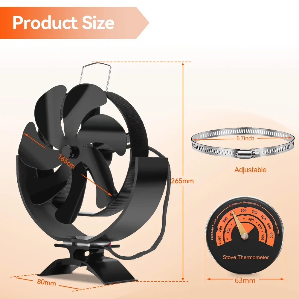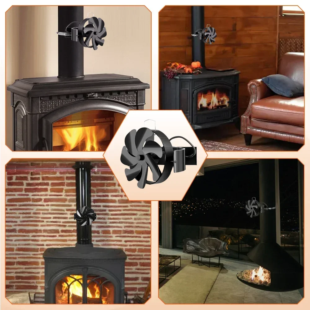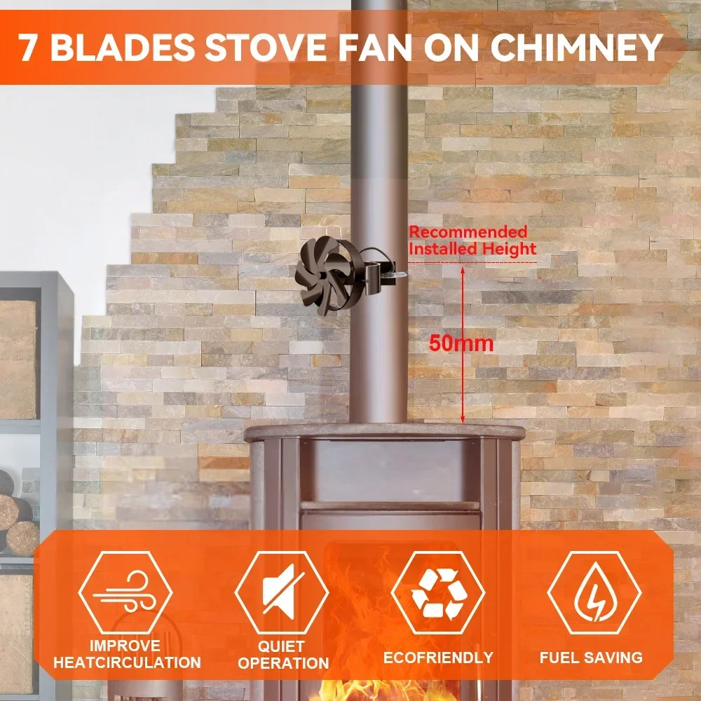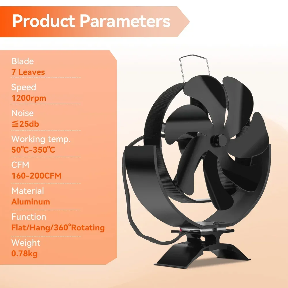 7-лопастной черный вентилятор для камина, многофункциональная дровяная горелка,